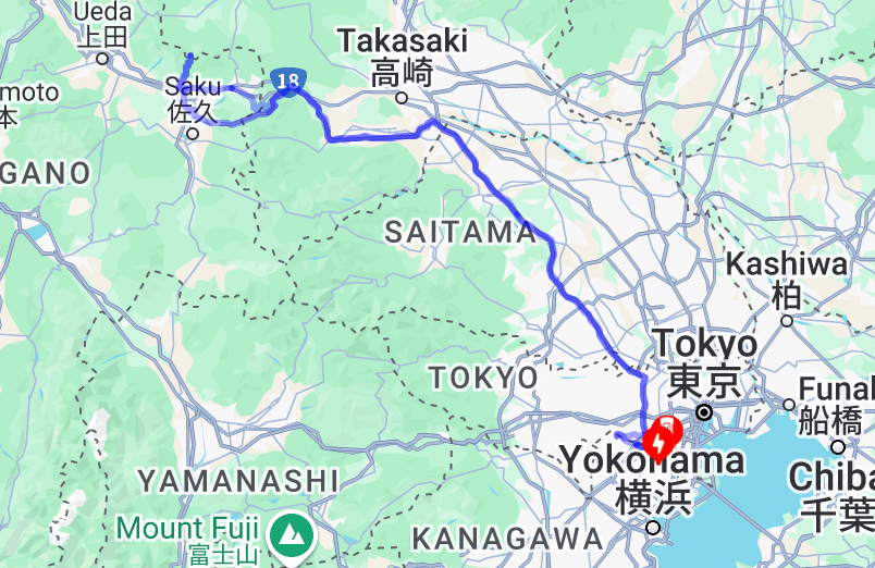 目的地は長野県小諸市の 高嶺高原にあるスキー場。今回は1泊2日の旅で、軽井沢に1泊。スキー場では充電なしの条件で走行しました。