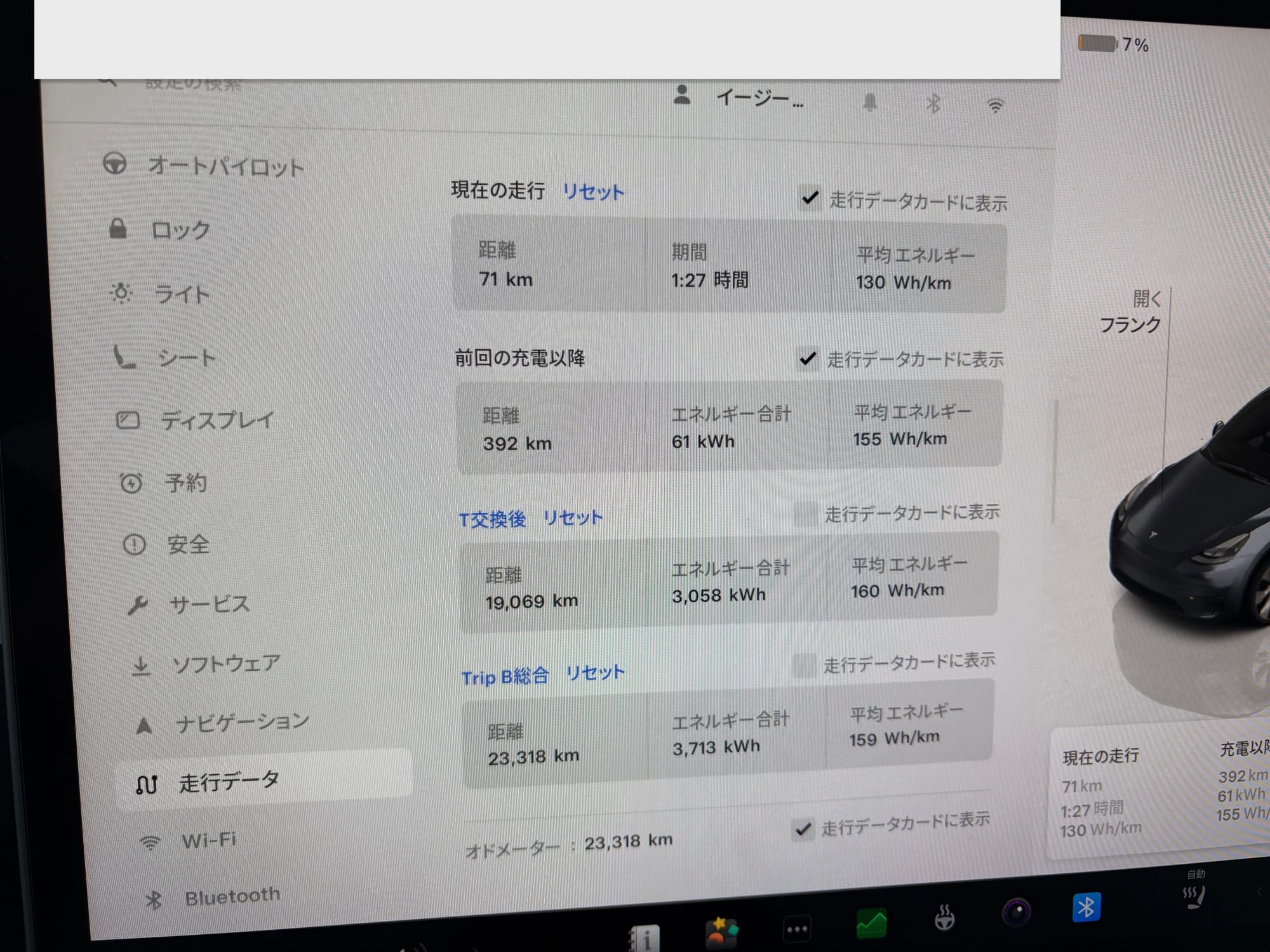 - 帰宅時のバッテリー残量:7%(回生ブレーキで電費向上!)
